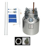 دستگاه تقطیر 16 لیتری با خنک کننده سطلی آبی بهمراه دماسنج - سوپاپ اطمینان - ذغال اکتیو و سدیم سولفات که مناسب استفاده در منزل می باشد قابل استفاده بر روی گاز کابینتی بوده و براحتی می توانید در منزل عرق گیری انجام دهید. البته این پکیج از دستگاه تقطیر که بهمراه خنک کننده سطلی آبی می باشد را می توانید بروی گاز کابینتی بگذارید ولی اگر از دیگ عرق گیر 16 لیتری بهمراه کندانسور برقی استفاده می کنید ، نمی توانید بر روی گاز کابینتی گذاشت چرا که دستگاه تقطیر 16 لیتری بهمراه کندانسور برقی قدرت گاز بالایی میخواهد و شما حتما بایستی جهت آن دستگاه تقطیر از گاز تک شعله جداگانه استفاده نمائید. دستگاه تقطیر 16 لیتری با خنک کننده سطلی آبی از آب جهت تبدیل بخار به مایع استفاده می کند و در این نوع از خنک کننده ها از یک سمت آب وارد شده و از سمت دیگر آن ، آب گرم حاصل از تقطیر خارج خواهد شد. دقت کنید فقط دو سوم از دیگ تقطیر را پر نمائید طوریکه حتماً یک سوم آن خالی باشد تا فشار به دستگاه تقطیر نیاید.